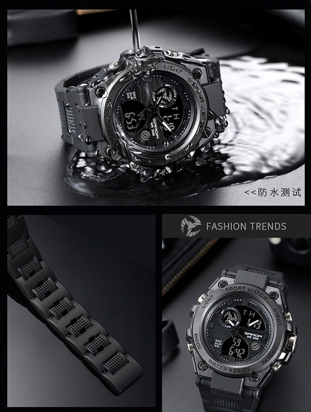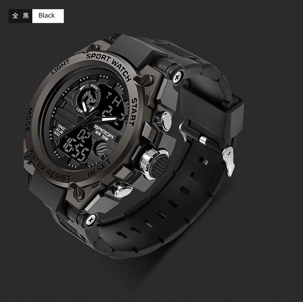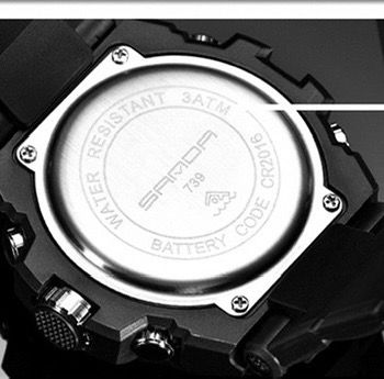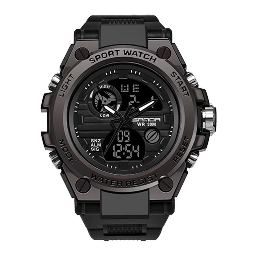 Display duplo (analógico + digital)|Resistência à água 30 m|Iluminação noturna|Alarme, cronômetro e funções múltiplas para uso diário e esportivo